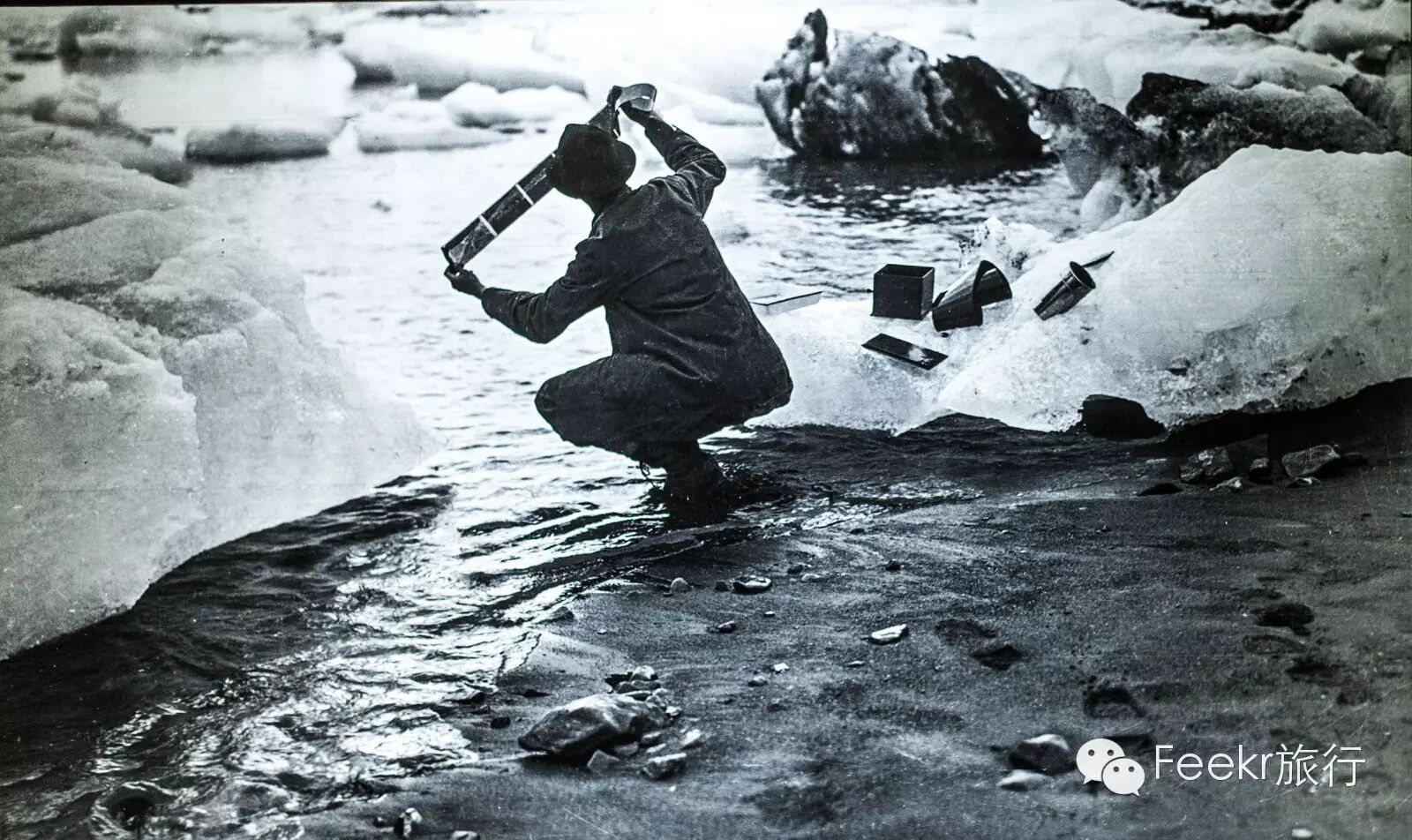 国家地理学会赞助摄影师奥斯卡·D·冯恩格尔恩到阿拉斯加探险,用冰山之间的海水冲洗菲林是他的日常工作。