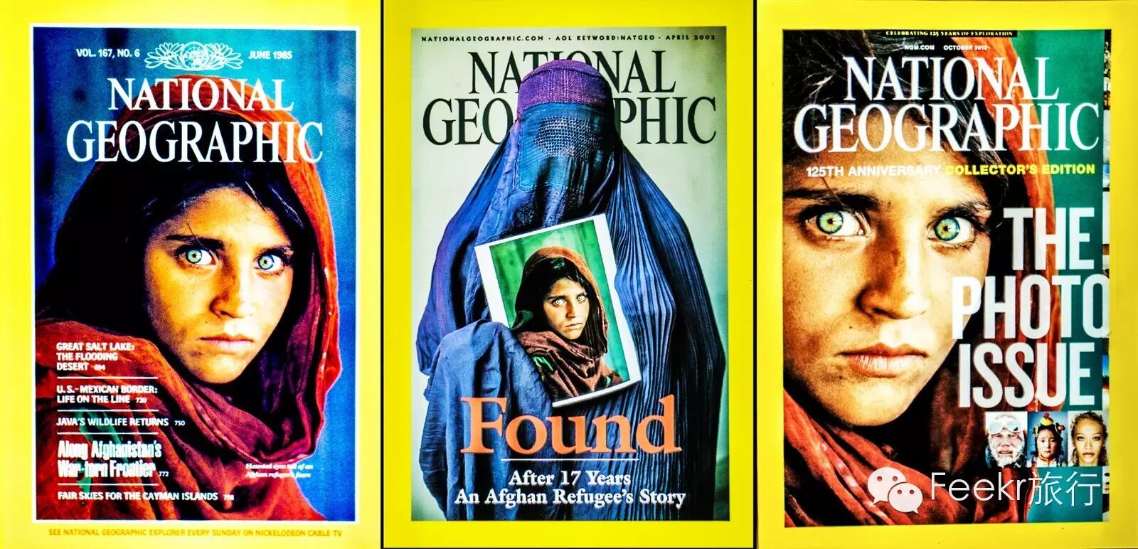 在封面墙上,一共可以找到三次以阿富汗少女为内容的封面,可以看出少女的眼神有一种恐惧之感,因为就在拍摄照片的前几天,女孩家的房子被战机炸毁了,父母也被炸死了,祖母趁着天黑将父母埋葬,之后带着她与哥哥投奔到了难民营。
