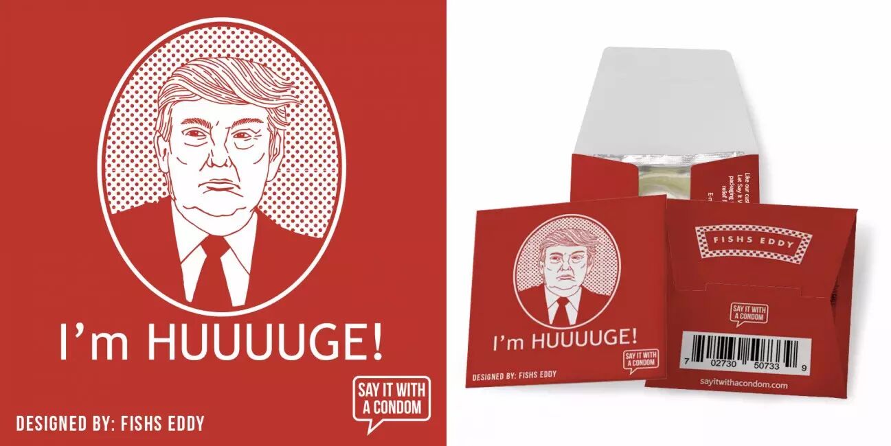 川普的各种形象周边也遍地都是,不过都不是什么好东西,什么套套啦、厕纸啦,发胶啦,减压小人啦,还有个巧夺天工的厕所。
