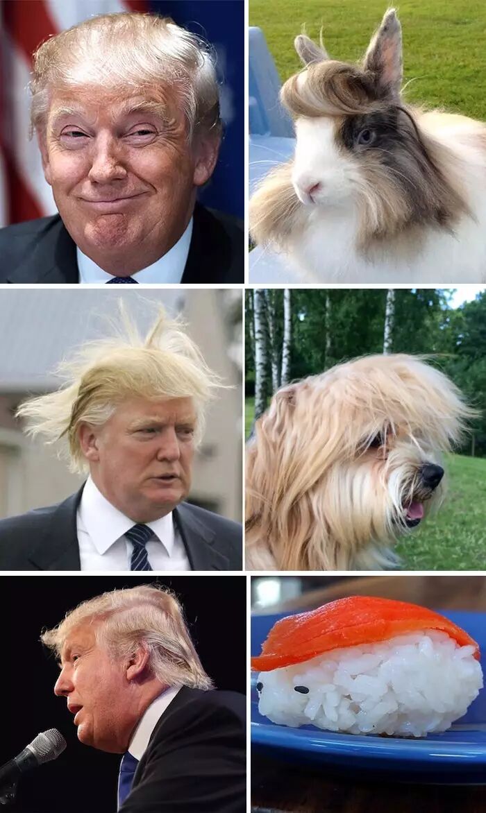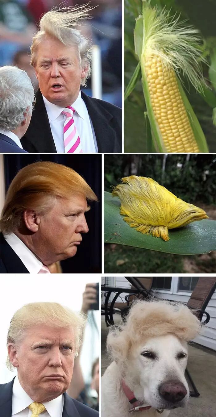 不得不说,作为一个快70岁的老汉,川普的一头金发保养得相当好。他还好几次在演说中邀请观众上台薅他的头发,证明不是假发。那随风而变的飘逸发型,给网友们留下了无数想象空间:
