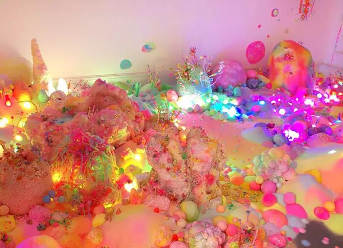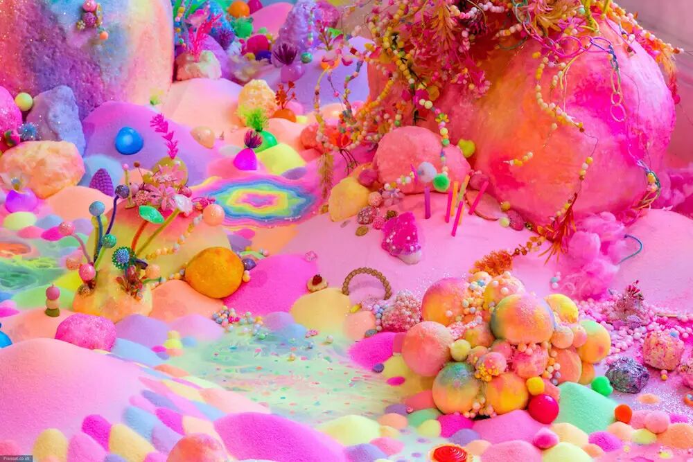 而来自澳大利亚的艺术家 Tanya Schultz 尽管已经是一位成年人,但她没有忘记儿时的梦想,用彩色的糖果、糖粉制作出了一座座梦幻的糖果山,创造出了现实版的「查理和巧克力工厂」。