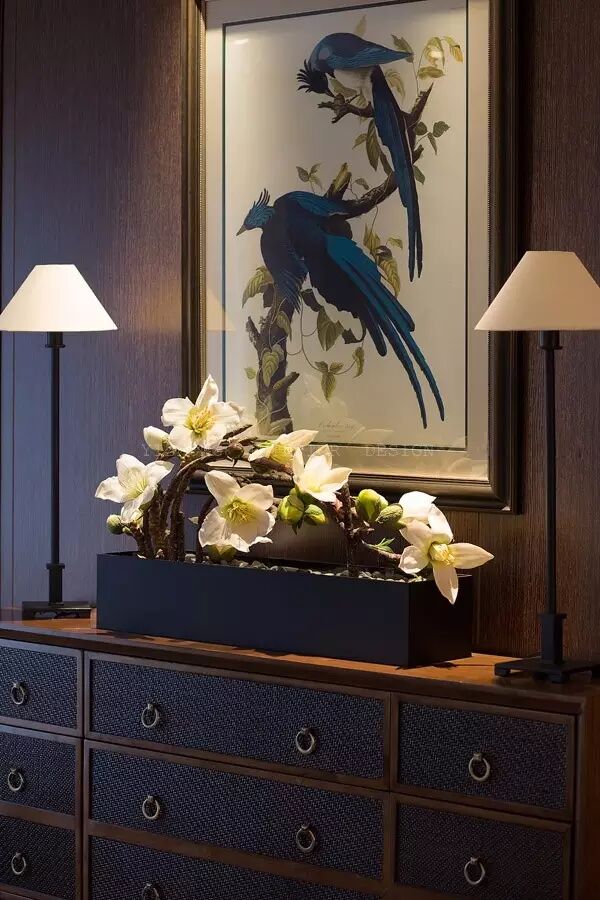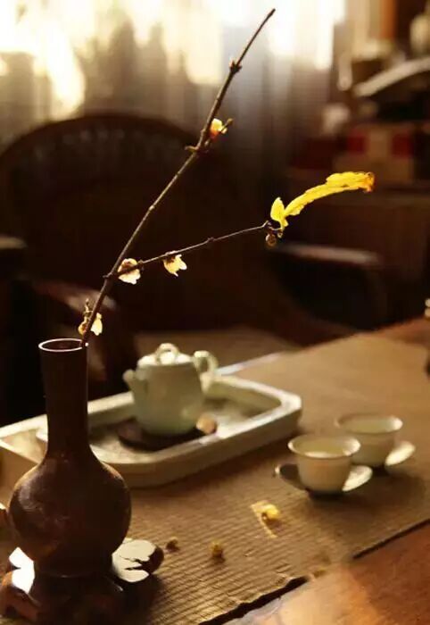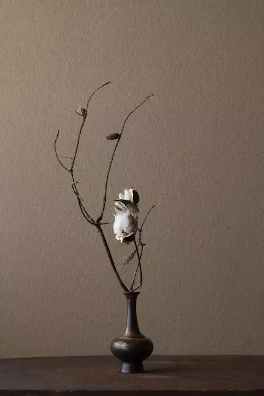 一件赏心悦目的插花作品,或借花材的自然形态渲染一种空间的禅味,或借花卉的生命荣枯来捕捉自然真实的瞬间,传递主人的一种艺术感悟和心理志趣,使人获得精神上的美感共鸣。