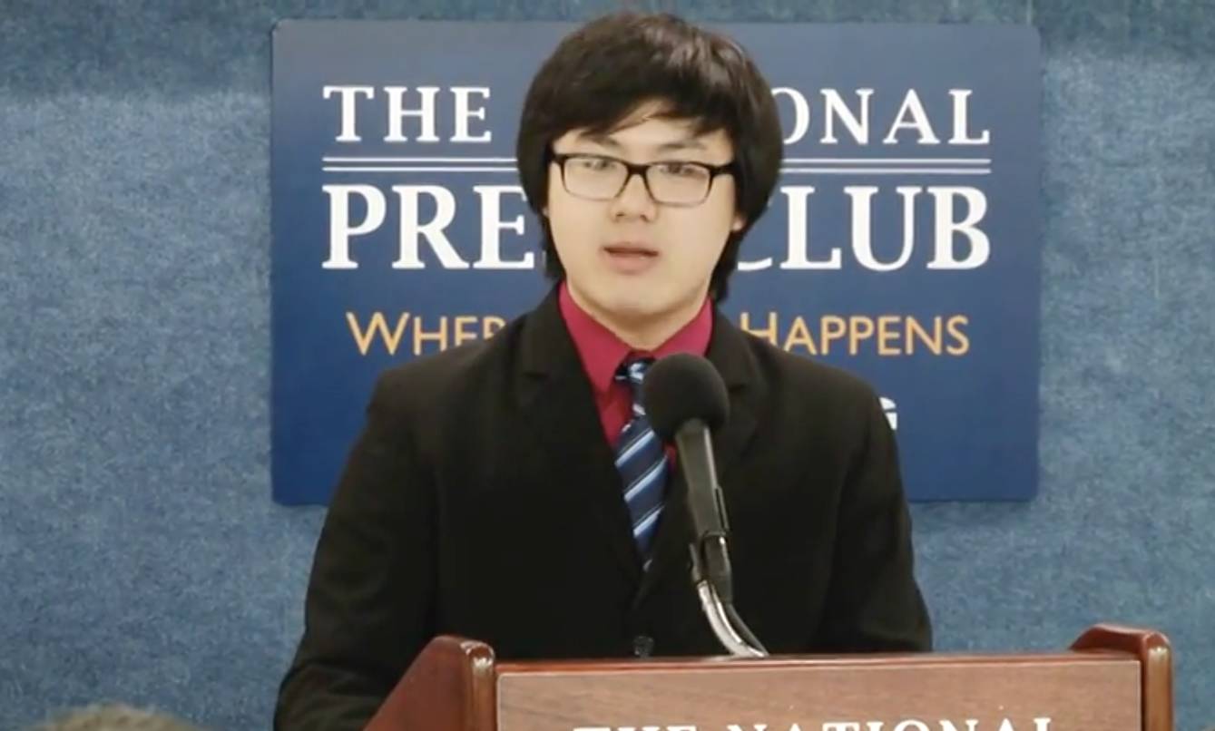 △ 在新闻发布会上,王迈克陈述自己在录取时遭遇不公