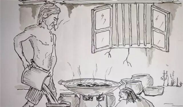 制作猪血汤的彬哥,林宝生绘