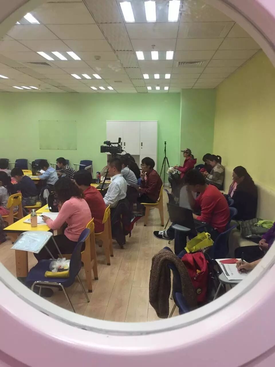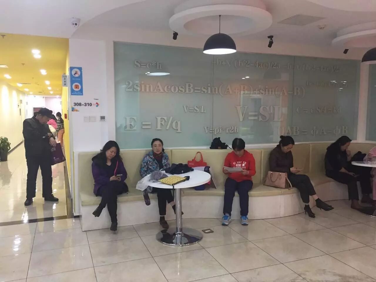 在门外等待孩子培训班下课的家长们