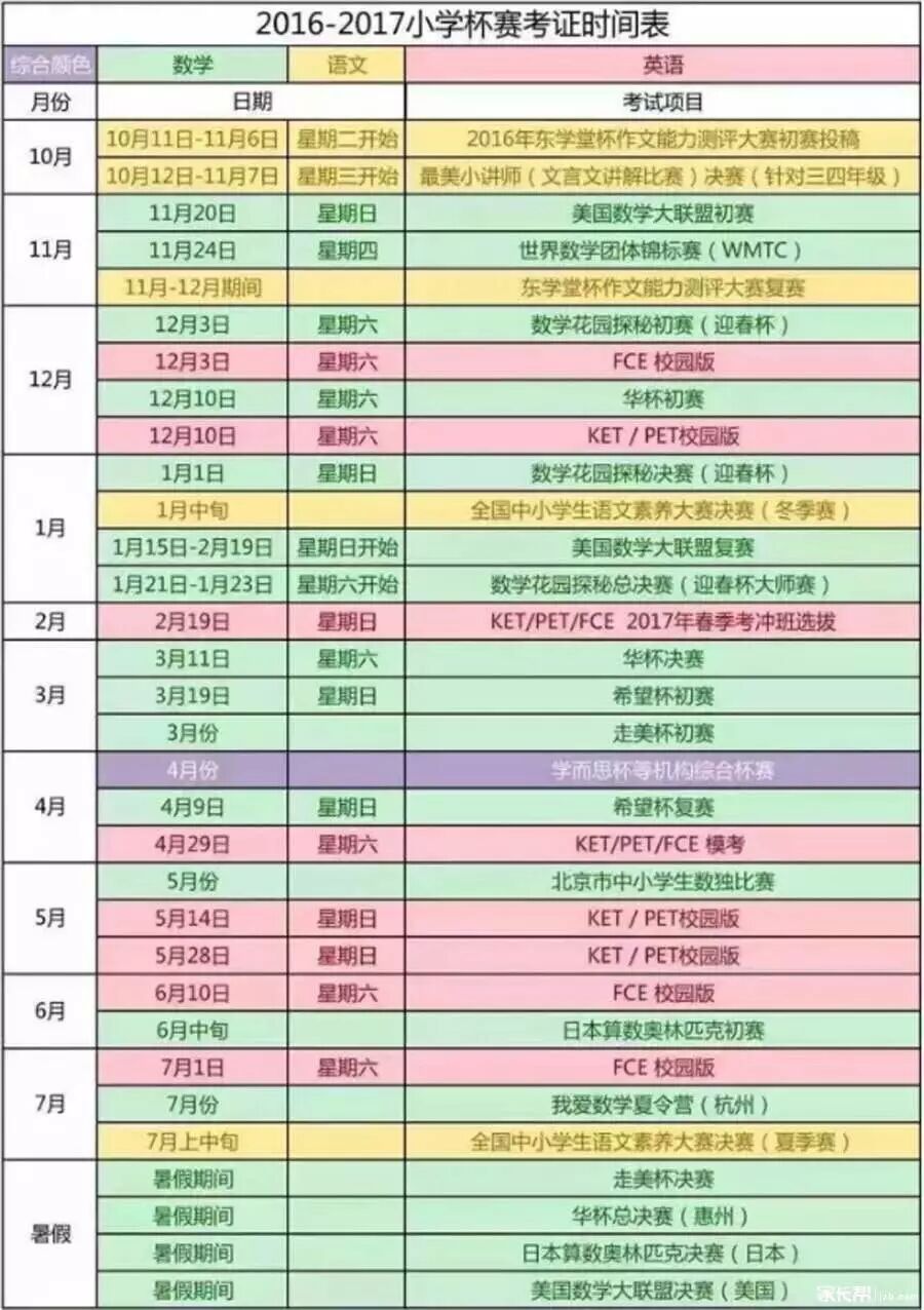 一名家长收集的小学杯赛时间表