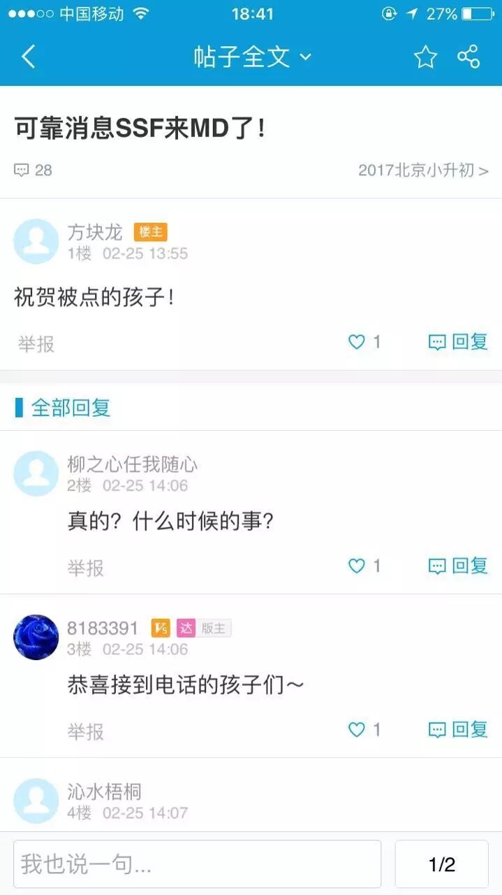 某论坛有家长表示接到密电