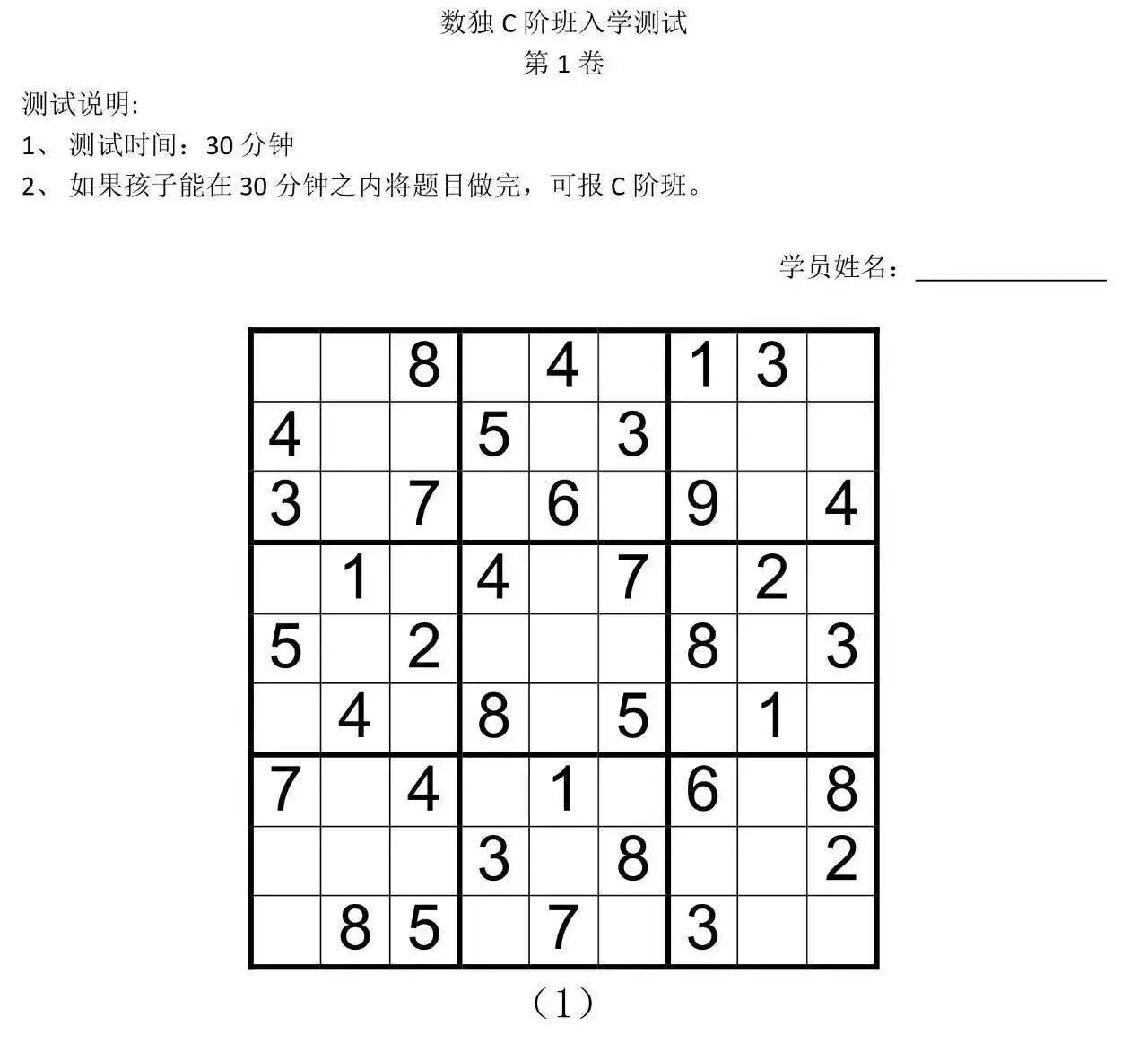 小学一二年级的数独测试题