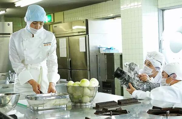学校营养师除了制定菜单,还要和调理师一起负责卫生管理:厨房间的清扫、消毒。每天早晨送到的食材,必须一件一件地严格检查,并检测表面温度;厨房地板不能有一滴水,以防细菌繁殖;切蔬菜必须使用专用的防菌机器;制作午餐时,必须全身白色调理服、白色调理帽、白色大口罩,所有食材必须在规定时间内完成烹饪,并在规定时间内准时开餐……时间、成本、安全、营养、美味,一样都不能少,做一名日本学校午餐的炊事员,并不比三星米其林的高级主厨更容易呢。
