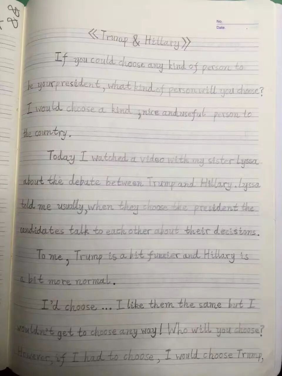 皮皮晚上有坚持写英文日记的习惯,这是其中一篇关注美国大选的文章。