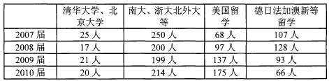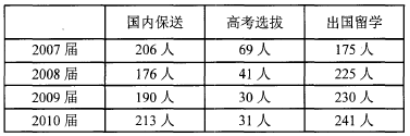 ▲ 南京外国语学校2007年-2010年中学毕业生去向简况