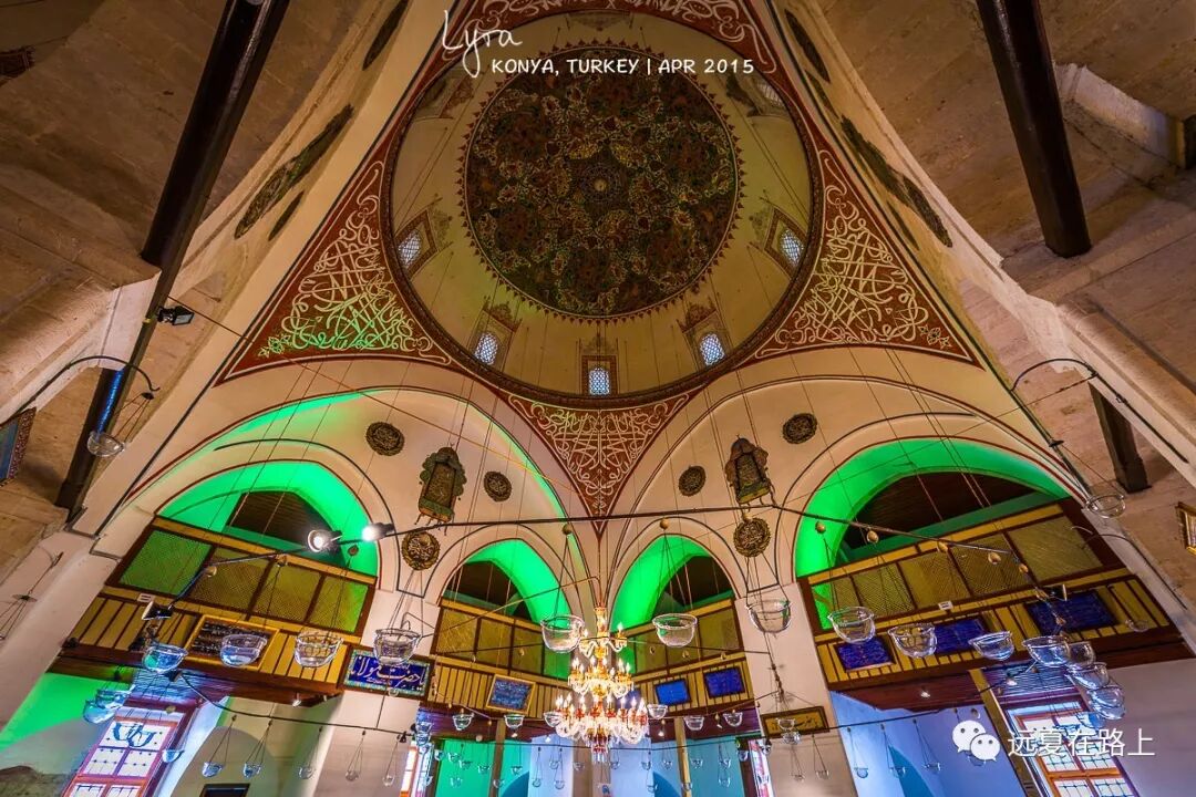科尼亚最重要的景点,就是城市中心的梅乌拉那博物馆(Mevlana Museum)。这里埋葬着13世纪的诗人、法学家、神学家梅乌拉那-杰拉莱丁-鲁米(Mevlana Celaleddin Rumi),发明了旋转舞的梅乌拉维教团也驻扎在此。精美壮观的博物馆名气不亚于蓝色清真寺,是很多穆斯林心中的圣地。每年,有大约150万人来参观,其中多是土耳其本国游客。