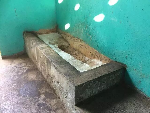 我去的第一天上了大号,就先说说厕所。这个厕所的“老师间”有一个小便池和三个并排的坑位,但空间非常逼仄,坑位之间还没有隔板。这儿的通风很好,当时我脱了裤子往中间的坑位一蹲,寒风吹得屁股一阵阵地抽,愣是一条整的也没大出来。我往前看了一眼:这都快4月了,小便池里还结着大块淡黄色的冰。