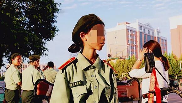 现在,她面对的是人生的新起点。她学踢鹅步、走列队、叠豆腐块儿一样的被子,经历着中国大学生的开学第一课。曝晒了几天后,张易文嘴唇有些开裂,皮肤变得黝黑。