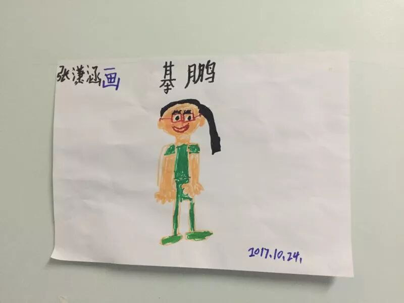24号的时候,晓玲的呼吸已十分费力,生命体征趋近于零。 基鹏见过其他孩子是如何在ICU里过世的。那是一个残忍的过程,封闭的ICU家长进不来,孩子们孤零零躺在床上。最后时刻,床周围的帘子会被拉上,直到他们呼吸停止。然后太平间的工作人员进来,把遗体装进一个塑料袋里,拉上拉链封起来,就拖走了。 基鹏和她父母讨论,希望他们能把孩子接回家。让她的最后时分,能在熟悉的环境里、在爱的人身边。 来接孩子时,晓玲父亲从兜里掏出一个粉红色的儿童手表。是以前她特别想要的,他一直没给她买。这一次,给她戴上了。 医生和护士一根一根拆掉了她身上的引流管,拔掉了所有的胶布和针,缝上了所有伤口。把身体擦干净了,给她穿上一条粉红色的裙子。她的干妈、最好的朋友都来了,轮流对着她讲话。 离开时,护士最后给她配了一袋液体,里面有镇定镇痛的药物,确保她能舒服一点,不会痛。 2010年,学麻醉专业的基鹏大学毕业,留在了华西医院做住院医生。他们要接受5年的培训,要在不同科室轮转。轮转到小儿ICU时,她留下了,因为喜欢孩子。那时候麻醉科一位老师“嘲笑”她:先心病的小孩,上帝把他们制造出来,就是要被自然选择淘汰的,你们偏要违背天命。 她不信也不管这些。在她的办公室墙上,贴着一张画像,她穿着绿色的无菌服,扎马尾、戴眼镜。这就是她在病房的日常装束。画画的娃娃叫张潇涵,经过多次手术,胸口是长长的疤痕。但他总带着笑,乖得很。 患者张潇涵画的基鹏。图 / 罗婷