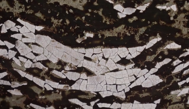 还有《断纹》,那是他最具颠覆性的作品。漆能千年不腐,要想在漆面上看到断纹,要么是年代太过久远,历经风霜的漆面断裂,露出了内在的麻布胎、木胎,要么就是做漆的人出现重大失误,是一件残次品。