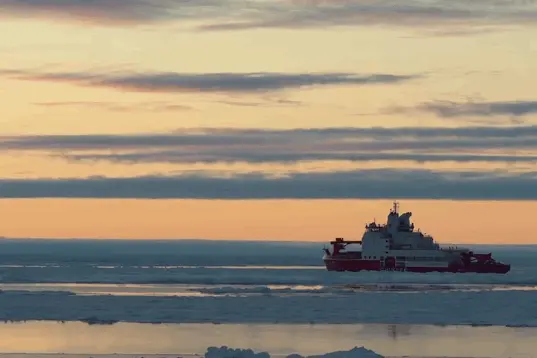 入夜,极昼的冰海依旧泛着太阳的微光。