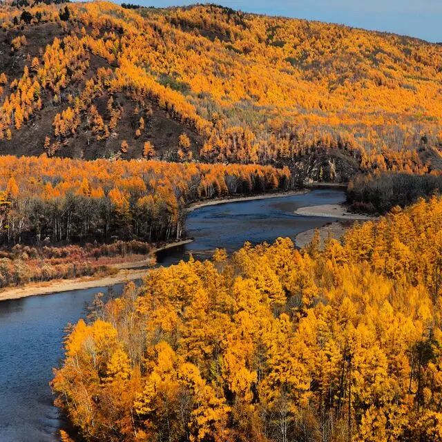 推荐理由:中国最冷小镇呼中地处黑龙江大兴安岭的核心地带,一年中的无霜期仅87天,海拔最高,平均气温最低(17度)森林树种以兴安落叶松为主~而要推荐这里,正因为这里冷,这里的秋色来的最好,而冬日也来得最早,因为它的秋色最美的不是金秋,而是当银白色的霜降遮掩了金黄红绿,给人展现不一样的银秋!