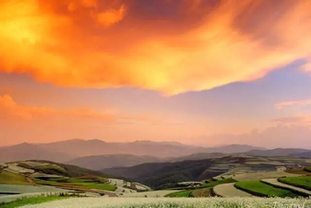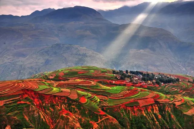 推荐理由:云南东川红土地,被专家认为是全世界除巴西里约热内卢外最有气势的红土地,那天然的红土壤被勤劳的劳动人民随意耕作的庄稼,立马织就成一幅幅色彩艳丽的油画。