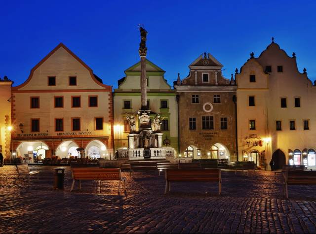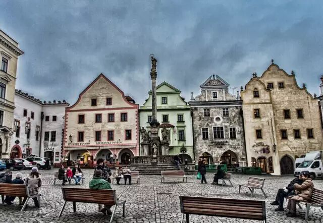 小镇中心的斯沃诺斯基广场中立着一根雕琢精美的石柱,那是纪念中世纪黑死病中死难者的喷水池雕塑。那场席卷全欧洲的大瘟疫,的确是一场重大的灾难,捷克的人骨教堂也是因此而建。