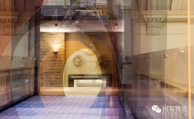 开展当日, 在V&A博物馆通往文艺复新雕塑馆的桥上就出现了这样一条像是来自异世界的隧道,这是出自伦敦设计师Matteo Fogale和Laetitia de Allegri之手的装置作品,名叫“Mise-en-abyme”。