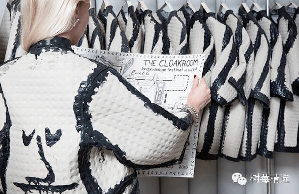 每个去V&A的参观者都能从这个更衣室借走一件这样的大衣,因为它其实是一张地图。Studio Toogood展出了150件超大尺寸、款式类似的大衣每一件后面都有一种表情,而内部则是一副实用的博物馆地图。