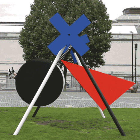 Isabel + Helen工作室用色彩亮丽的几何形板做了一架造型独特的秋千以庆祝切尔西艺术学院10周年校庆,同时作为伦敦设计节的参展作品,在霍布金斯阅兵广场上产出。受V&A博物馆的委托,设计师利用了原始的建构主义的元素设计了这个交互作品,以纪念俄罗斯艺术和文化的延续。