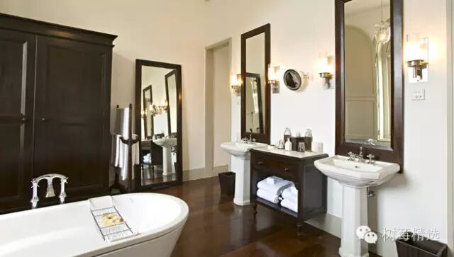 浴室一览,表面看起来走殖民风挺高大洋, 但是有个硬伤, 洗手盆这么小很难用的, 尤其是女生, 每天早晚梳洗的时候水花,肥皂沫四溅。
