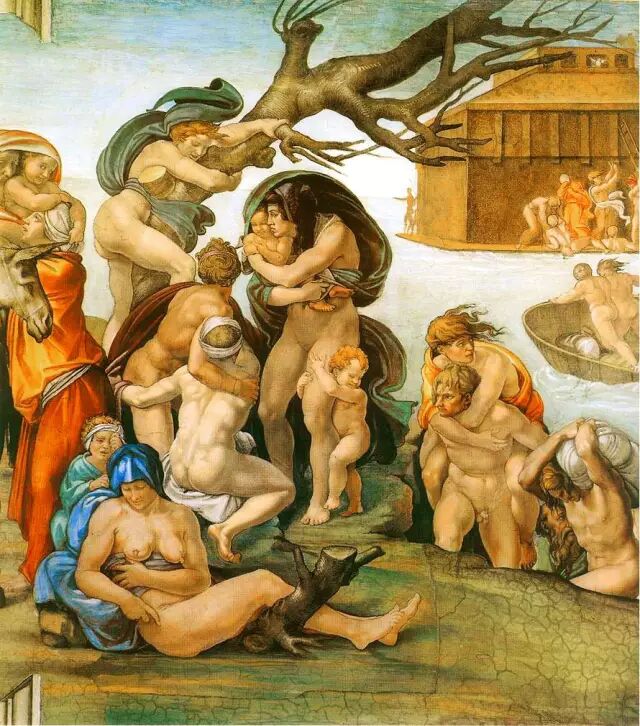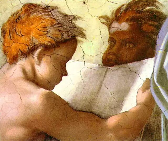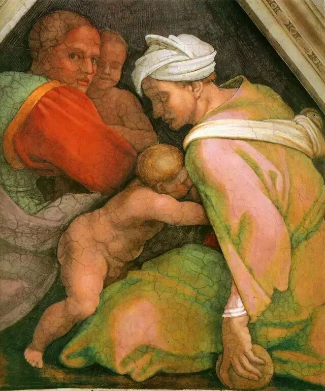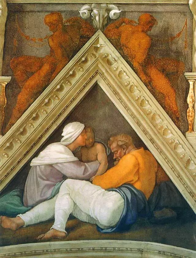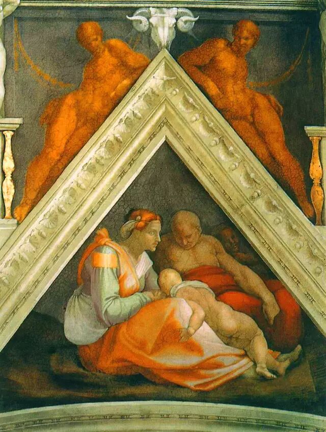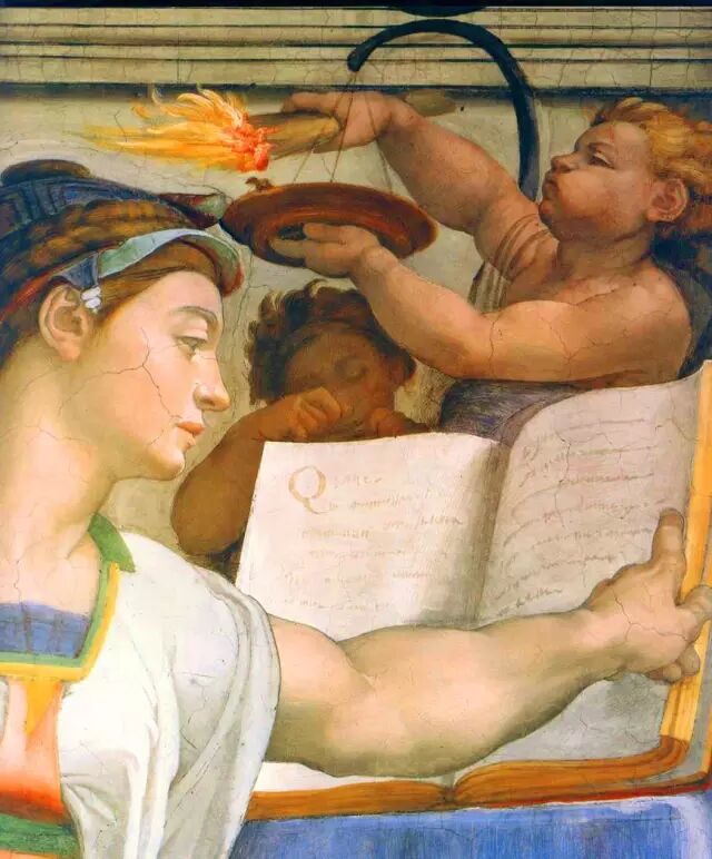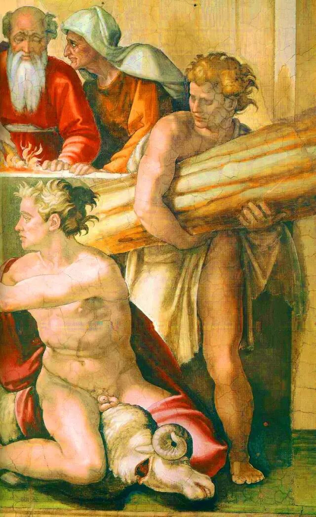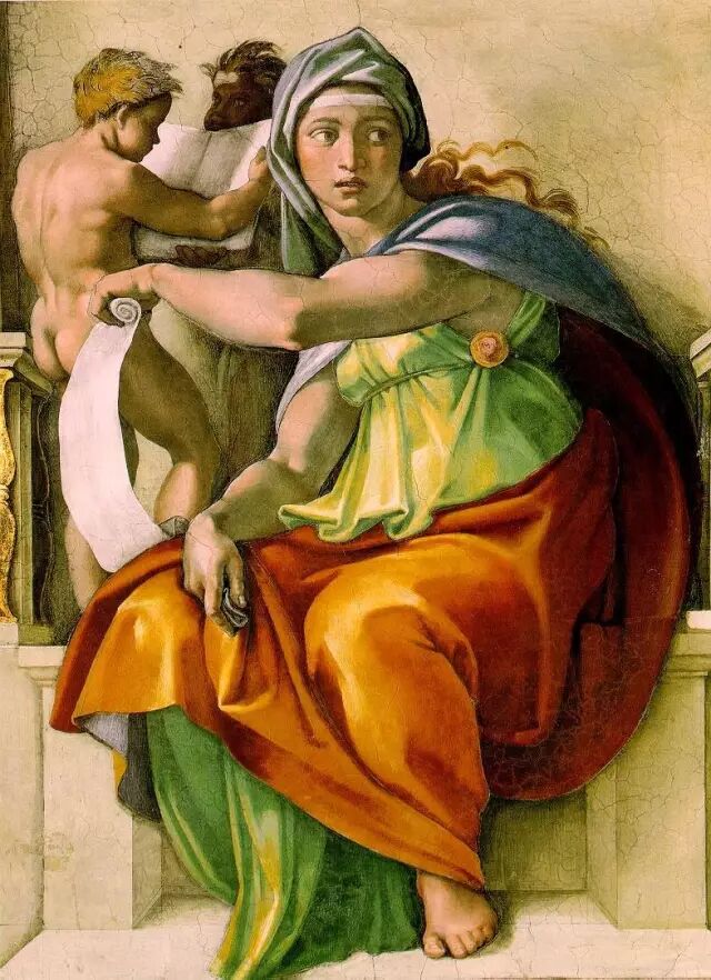 有的重在表现英雄人物的复杂内心世界,有的为加强先知与女巫的聪慧与睿智因素所有那些作为四角装饰的裸体形象,则是他的裸体雕像主题的绘画再现,他们有的是一些民族利益的捍卫者,有的在赞美自身的美,有的是在检阅巨大的天赋人权。当拉斐尔看了这幅巨大的天顶画之后,不禁感慨地说:“米开朗基罗是用上帝一样杰出的天赋创造这个艺术世界的!”