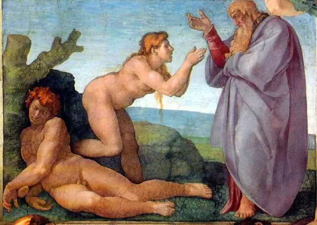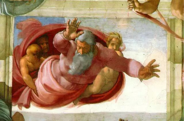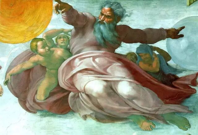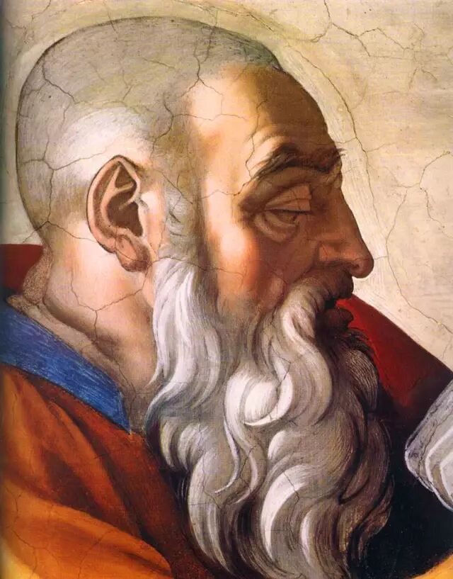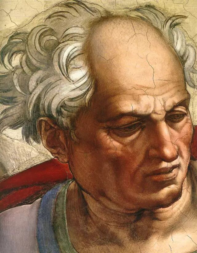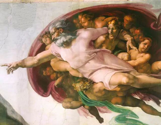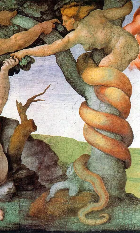 “我的胡子向着天,我的头颅弯向着肩,胸部像头枭。画笔上滴下的颜色在我的脸上形成富丽的图案。腰缩向腹部底地位,臀部变成称星,压平我全身底重量。我再也看不清楚了,走路也陡然摸索几步。我的皮肉,在前身拉长了,在后背缩短了,仿佛是一张弓。”这是米开朗基罗对他长年工作状态的描述,为了完成天顶画,他天天仰卧在高高的台架上。