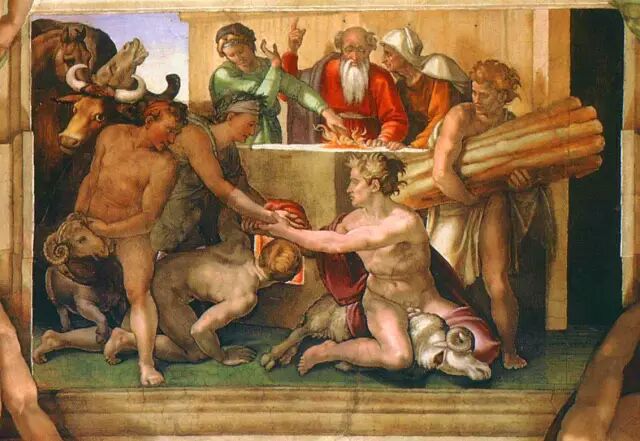 西斯庭小教堂的天顶画(the Sistine Ceiling Frescoes),是米开朗基罗的绘画艺术丰碑,,它与同一教堂的另一幅祭坛壁画《最后的审判》(the Last Judgement),是他一生最具代表性的两大巨制,这两幅壁画工程也是意大利文艺复兴盛期最伟大的艺术贡献。
