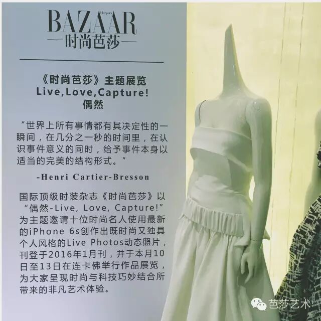国际顶级时装杂志《时尚芭莎》携手连卡佛举办主题为——“偶然― Live, Love, Capture!”的时尚艺术摄影展,旨在透过十位时尚名人们的独特视角,打造时尚与科技相互融合的创意艺术体验。