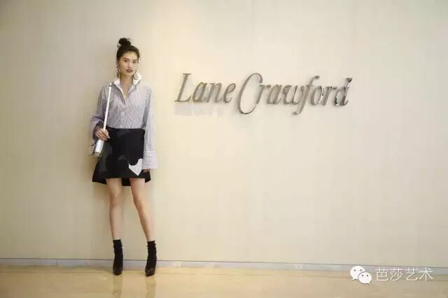 超模李丹妮身着蓝色条纹衬衫爱心贴花A字短裙VICTORIA BECKHAM from Lane Crawford 出席开幕酒会