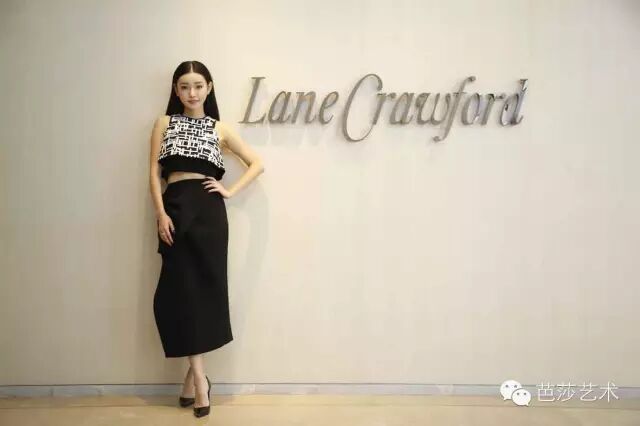 青年演员童菲身着黑白像素条纹无袖上衣及羊毛半身长裙MATICEVSKI from Lane Crawford出席开幕酒会
