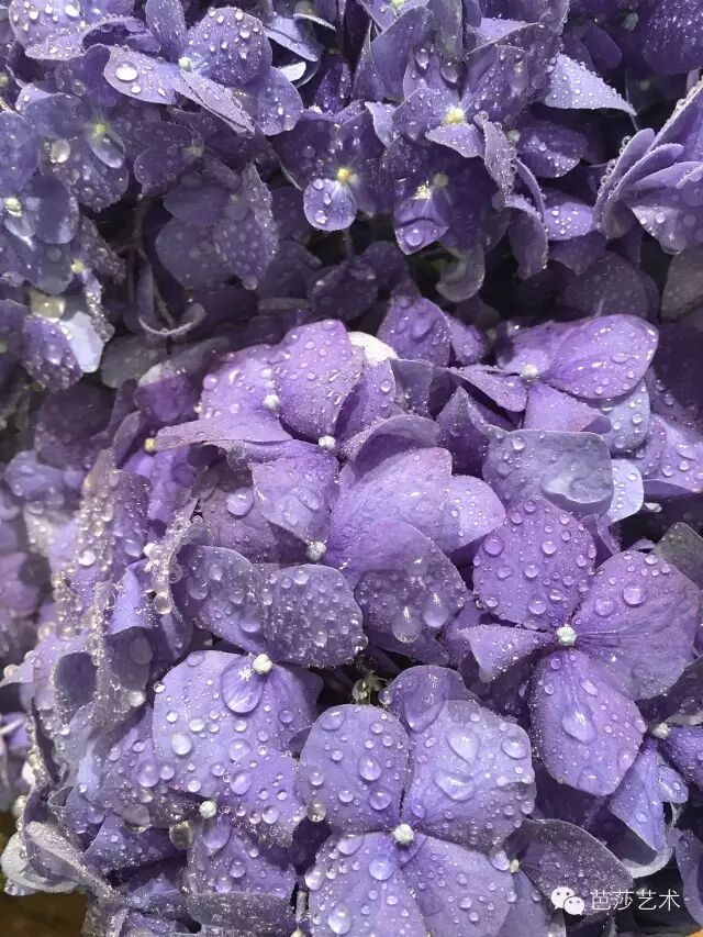 “你看到的就是我想表达的。水珠在紫色绣球花的花瓣上滴滴答答,植物的生命变得灵动而透彻。”