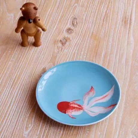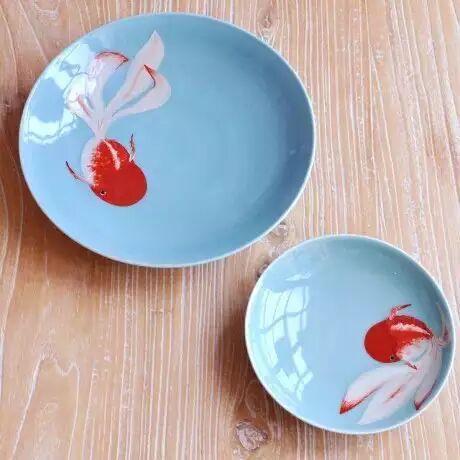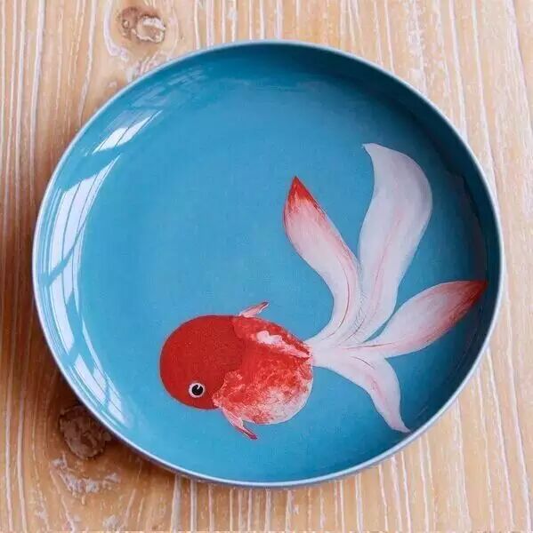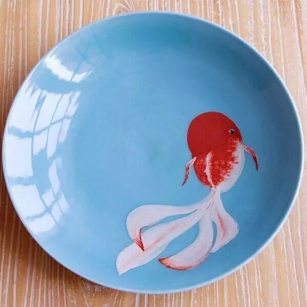 比如绘制金鱼系列瓷盘,自己看到鱼就满心欢喜,画出来则更甚。
