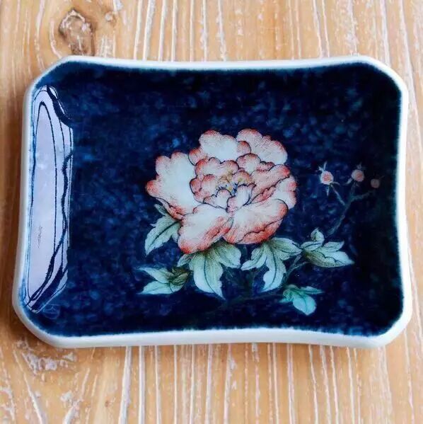 其实他们喜欢的是许瑞芸最真实的情绪表达。她的设计都是些日常的题材:牡丹花、小蝴蝶、一堆荔枝。她也没学过国画,画技离大师相去甚远,但大家买百华的盘子是拿来用的,不是用来当艺术品供奉的。