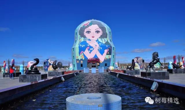 有点魔性的套娃广场,套娃的三面分别代表中国、蒙古和俄罗斯三国,这个广场上还能看到三国国旗。