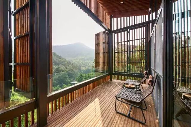 树屋内的落地窗开放式大阳台包揽风景无敌,270°观景可将山野整个迎进屋中,有的开窗便可伸手摘叶,听溪水潺潺、百鸟鸣叫,还有山野独有的草木气息,人在室内,也能感受森林的生机和欢愉。