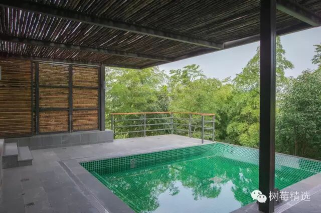 度假村的房间便是一幢幢的别致树屋,远远看去,就像藏在山野中的木盒子。开发时最大限度采用了环保石料和木料建造,都是私密性极强的独栋别墅,仅有31栋。每栋树屋门口有已成长的植物,树屋便以此而命名。