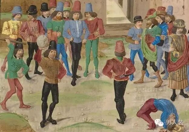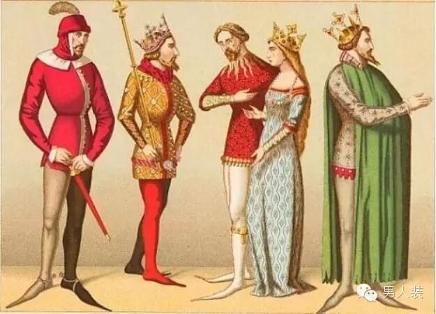 14世纪90年代,英国人爱的可不是身披盔甲的制服诱惑。年轻时尚的贵族偏爱色彩艳丽的紧身衣,越艳丽越风骚越好。这种衣服不仅能勒出汉子们的小蛮腰,还让他们胯下的“雄风”一览无余。可以说,当时整个英国的男人都是狂拽酷炫、邪魅狂狷的大卫·鲍威同款。