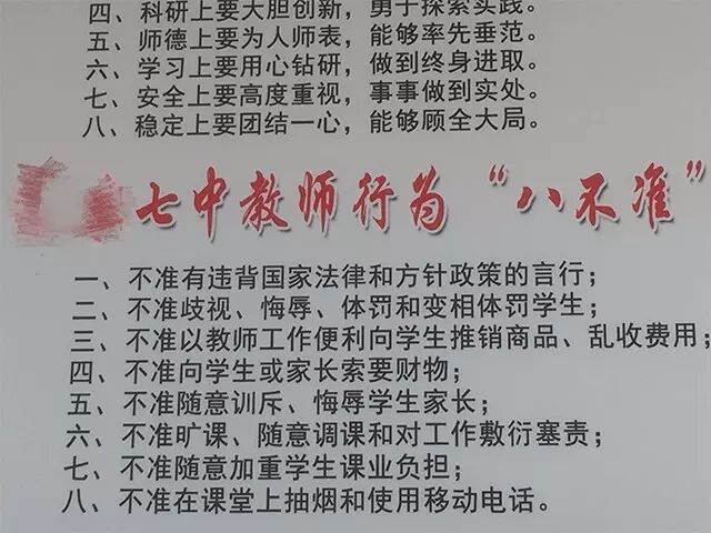 下了晚自习我在办公室里葛优瘫,呆呆地看着墙上的“双原七中教师行为八不准”,第二条写着“不许体罚和变相体罚学生”。