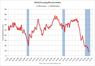 The builder confidence index was at 8 in January, a new record low. From: NAHB Housing Market Index Falls to New Record Low