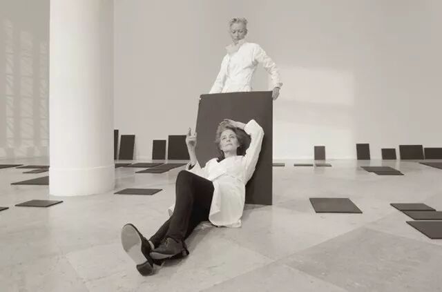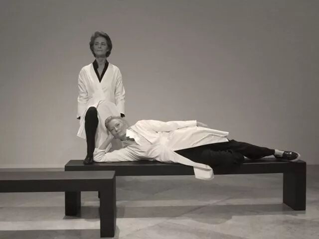 另一位神级戏骨夏洛特·兰普林则在去年的巴黎秋季艺术节上和蒂尔达共同出演了Sur-exposition。这有着45年历史的艺术节本来就是集全球艺术家的戏剧盛会,这两位一直片酬高名气大的影后对实验项目的参与,证明了她们是如何看待自己的身份的。在巴黎现代艺术博物馆里的表演中,素颜,白衫黑裤,沉默,默契的走位互动,二人演示着喧嚣时代下人对社会的下意识的反应,那些摄影器像是无声无息的怪物,把人这样本身柔软的生物变得冷酷,毫无温度。