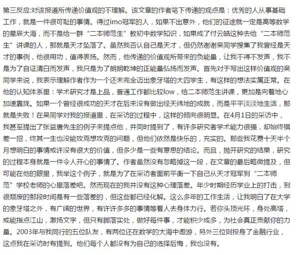 《奥数天才坠落之后》报道截图。原文:《人物》杂志