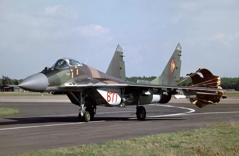1988年5月3日,东德空军战斗机司令部司令斯盖瑞斯上校登上一架米格-29UB的前座,后座是苏联飞行教官科托上校,积累了东德飞行员的第1000个米格-29飞行小时。米格-29在东德空军中的主要任务是防空,其次是对地攻击。 由于机场密度和飞机数量限制,东德境内的苏联空军和东德空军中队只能错峰训练。例如普雷森空军基地被分配在星期二、星期四和星期六飞行,演习时例外。 温格里奇继续说:“为了避免在大量飞行训练中发生冲突,每个中队都有自己截击飞行标准航线和空战训练区。” “整个东德空域的所有飞行活动都处于军事监管之下,民用飞机仅被允许在预先指定的空域和国际航线上飞行,且航线具有高度和宽度限制。总之,东德整个领空处于军事管制和协调之下。” 民用飞机在东德领空没有任何优先权,事实上在任何华约国家中都是如此,只能飞行在固定的飞行走廊上。  降落中的米格-29 607号