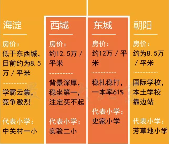 今年4月底开始,东西城、海淀等区均推出了“弱化学区”的政策。东城区将对区内6月30日之后取得房本的家庭,采用电脑随机派位的方式进行多校划片;西城区提高了小学入学门槛,要求“法定监护人在其他区无独立产权房且实际居住在西城区”;海淀区则规定,从2019年1月1日起,海淀区取得房本的家庭,将不再对应一所学校,实施多校划片。