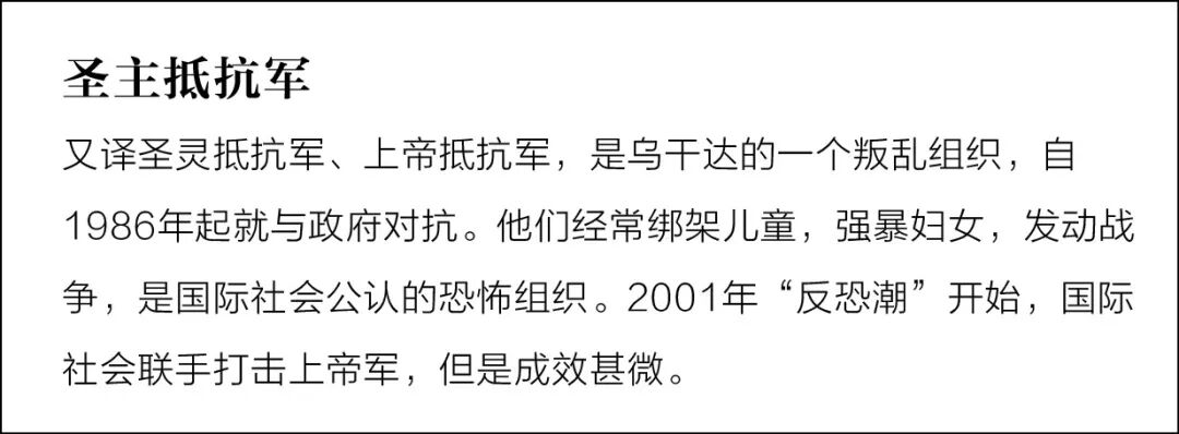 虽然近几年,乌干达叛军在全球反恐潮中有所收敛,但是至今,情况仍然不容乐观。