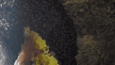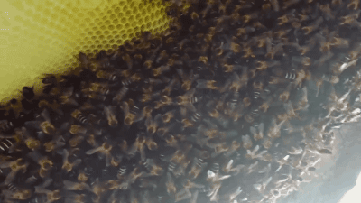 喜马拉雅蜜蜂,个头大,毒性强,数量多。一个蜂巢上,密密麻麻挤满了几千只蜜蜂。(密集恐惧者慎看下图)