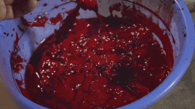 所谓血旺,就是羊血放到凝固,再放入辣椒、花椒、葱花,然后生吃...